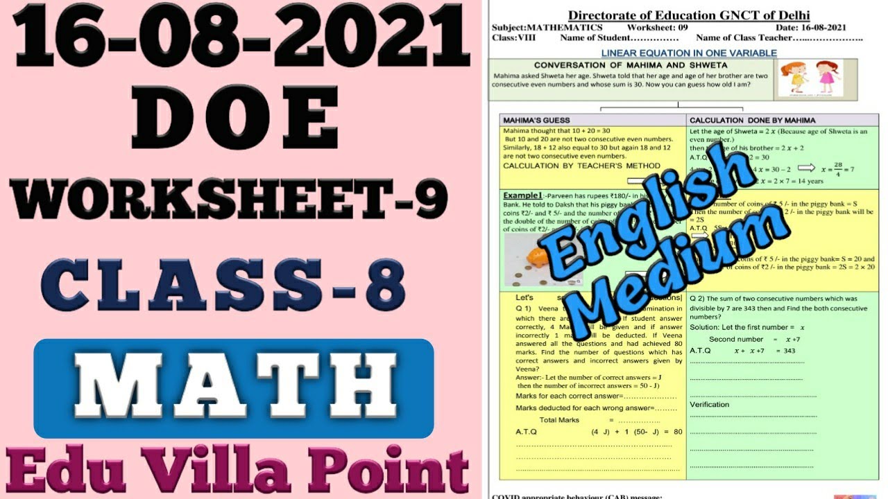 Class 8 Math Worksheet 9 16 08 2021 English Medium Class 8 Math Edu Villa Point Youtube